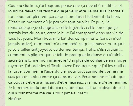C'est une reconnexion au corps, à la joie de vivre et à la puissance féminine.
