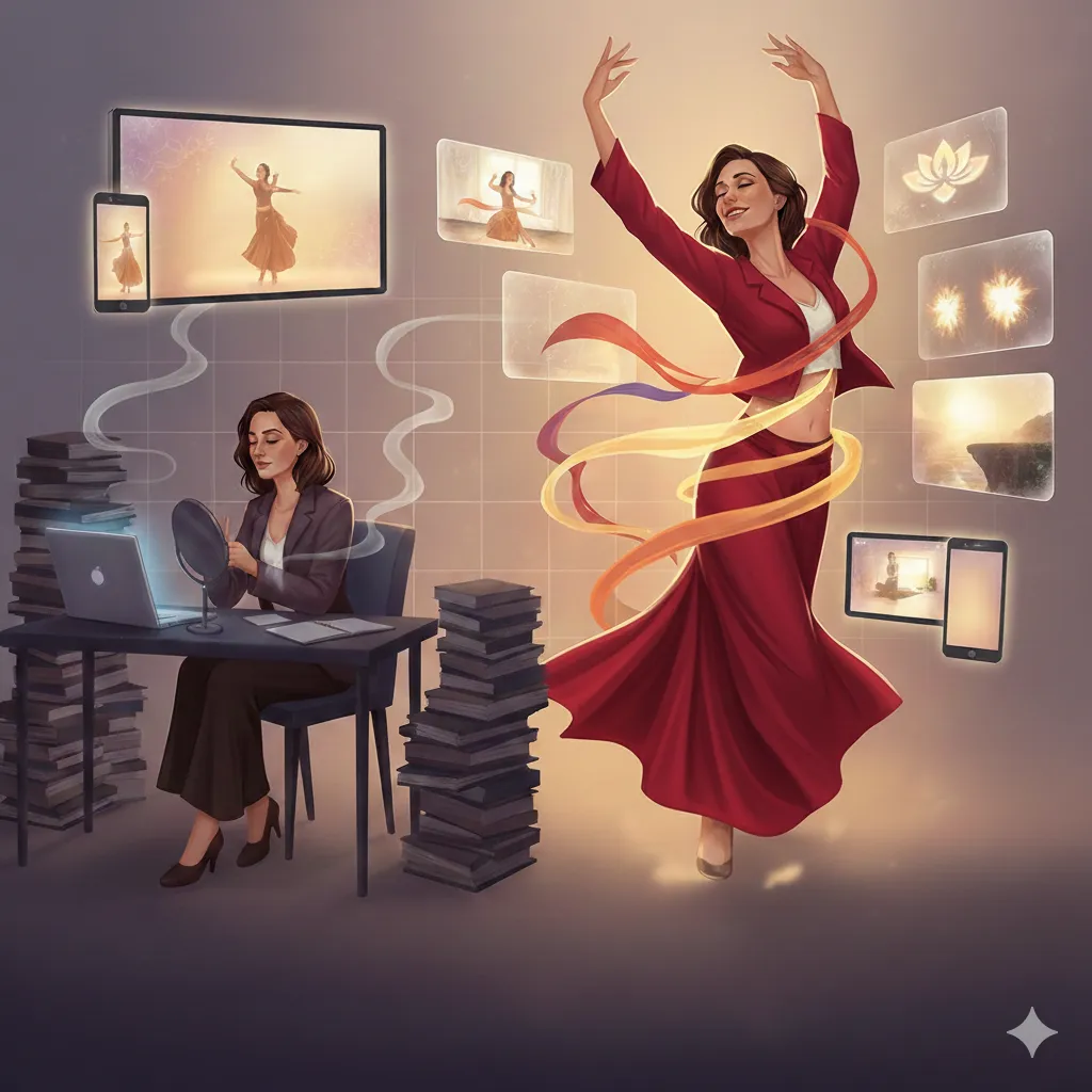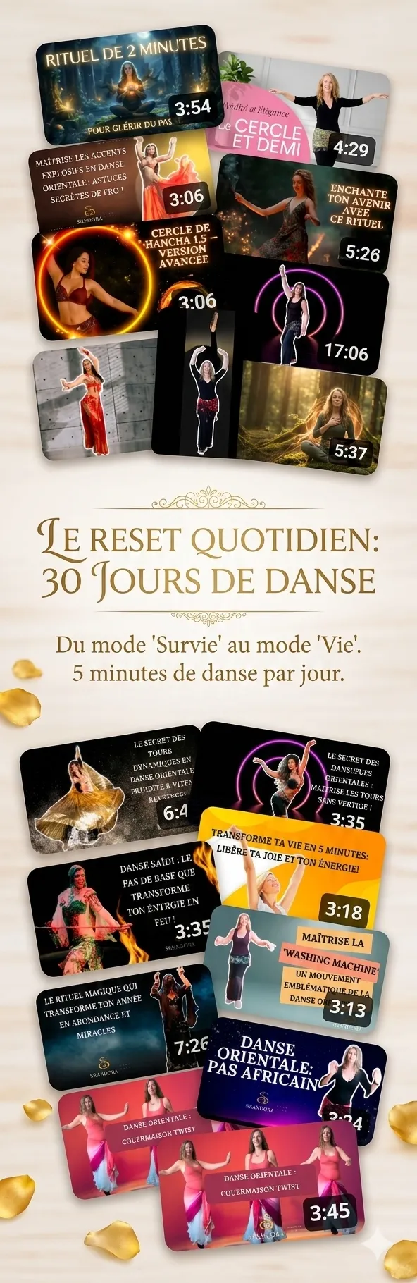 🌀 La Sagesse du Bassin (L'Héritage Oriental) : Vous vous souvenez de cette sensation de liberté après nos ondulations ? Nous reprenons les mouvements ancestraux de la danse orientale, mais nous les utilisons ici comme une "médecine". Ce n'est plus pour la performance, c'est pour masser votre système nerveux et libérer instantanément votre énergie vitale.
